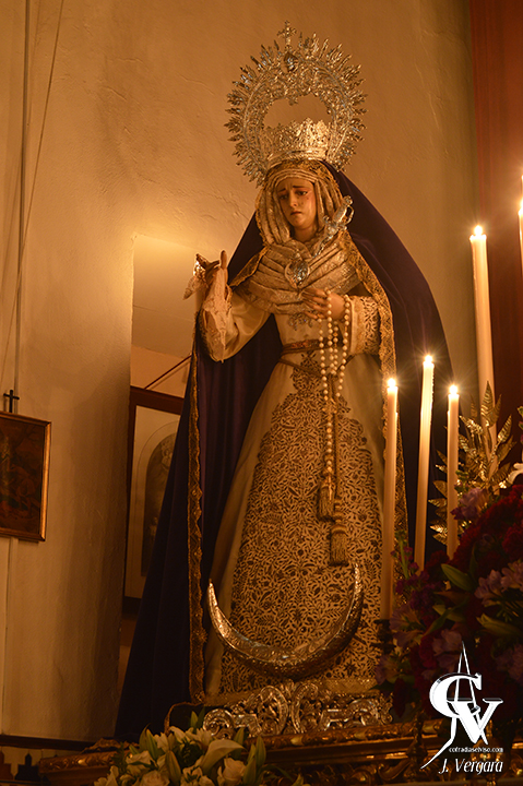 En cuanto a la vestimenta de las sagradas imágenes, el Señor de El Viso se presenta con túnica bordada, corona de espinas de plata y cruz de caoba, una de las más antiguas que posee. La Santísima Virgen se presenta con manto morado, saya bordada, corazón y puñal de plata.
