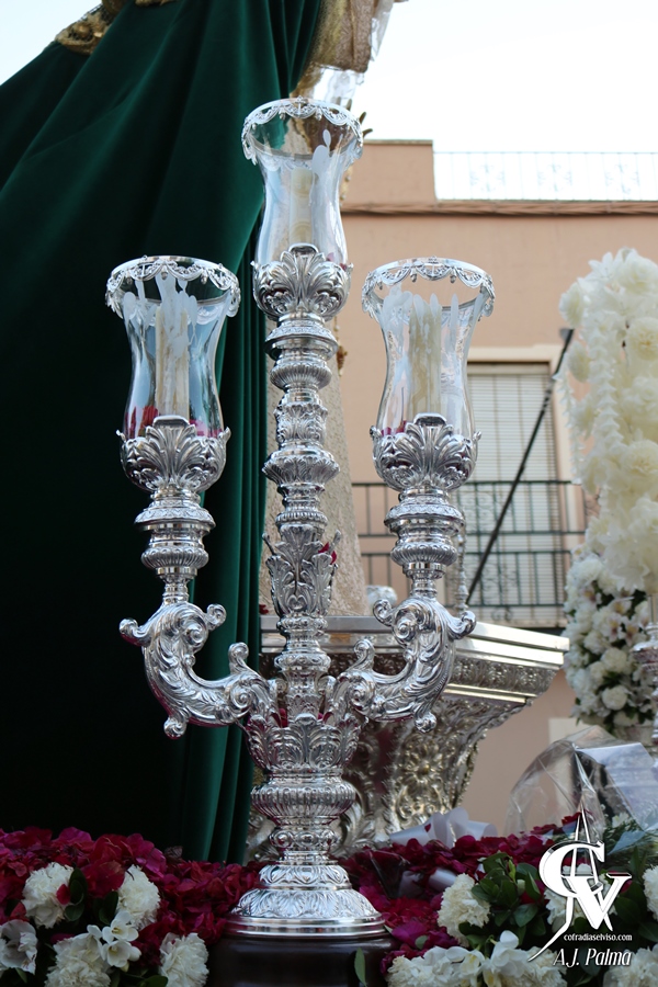 La Señora lucía regia estrenado un broche en plata de ley bañado en oro, rematado con perlas naturales, realizado por Joyería El Toisón y donado por una hermana, dos candelabros laterales de tres luces diseñados y realizados por el Orfebre Bernet que en el futuro formarán parte del paso de palio y un Rosario de nácar con cuentas de 12 mm engarzado con piezas bañadas en oro, donado por una devota. A sus pies presidía la Reliquia de San Manuel González, cuya custodia recae en la Agrupación Parroquial.