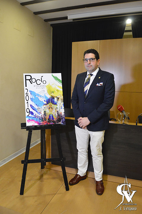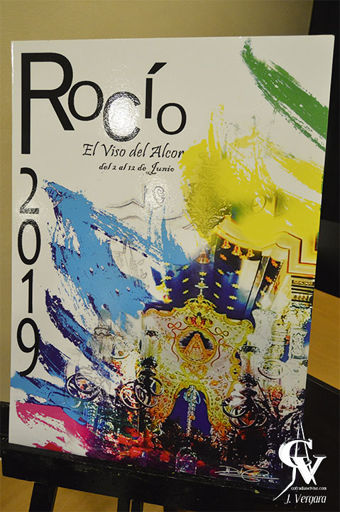 Todo ello está soportado por un fondo blanco liso, que simboliza una historia inacabada que seguirá tomando color y forma en todos los caminos de El Rocío venideros. Por último, las letras de la palabra Rocío no han sido plasmadas uniformemente, representando los altibajos diarios que aparecen en el camino, y la fecha (2019) ha sido colocada de forma alargada, lo que significa que este será un largo año lleno de eventos positivos para la corporación rociera.