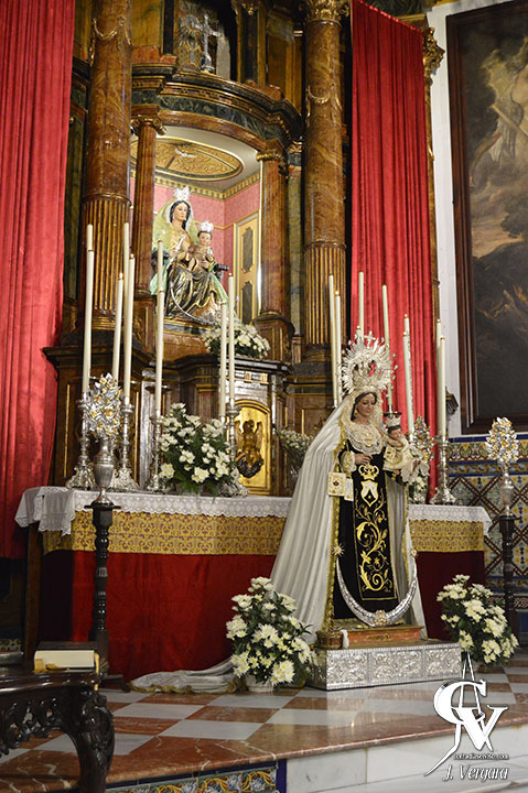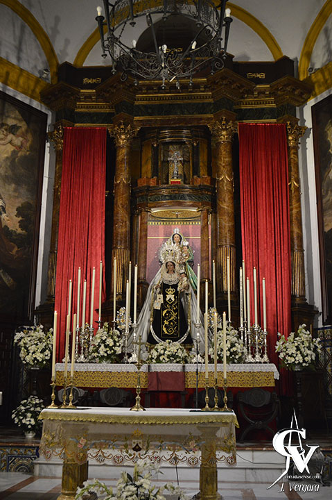La Santísima Virgen ha recibido la pleitesía y fervor de sus devotos entronizada en su altar de Septenario que ha destacado por su sencillez y elegancia.