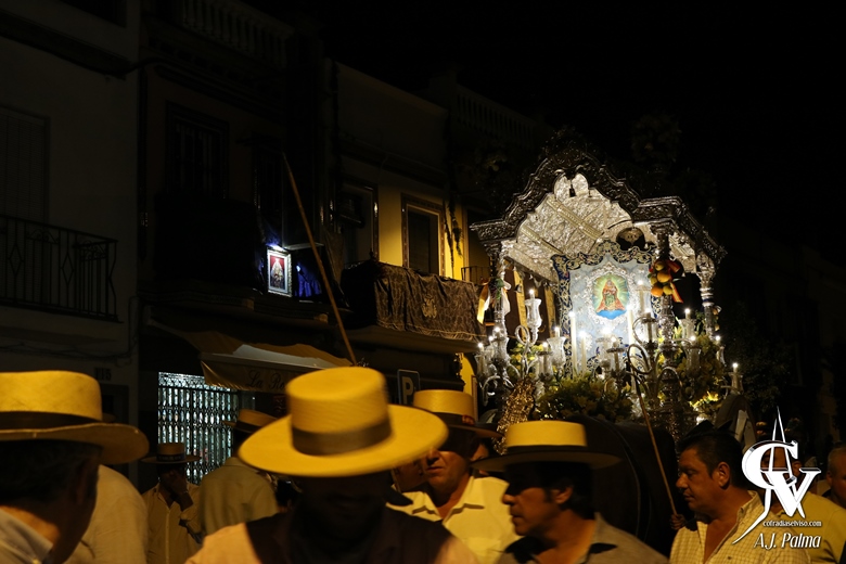 Ya por la tarde, a las 18:45 horas se realizará el Rezo del Santo Rosario, iniciándose el camino de vuelta a las 19:30 horas. De nuevo, se mantendrá el orden de la comitiva de la ida, incorporándose desde el Camino de Alcaudete hasta la carretera A-398, dirección El Viso del Alcor, realizándose la entrada en el pueblo por el Polígono Industrial Poliviso.