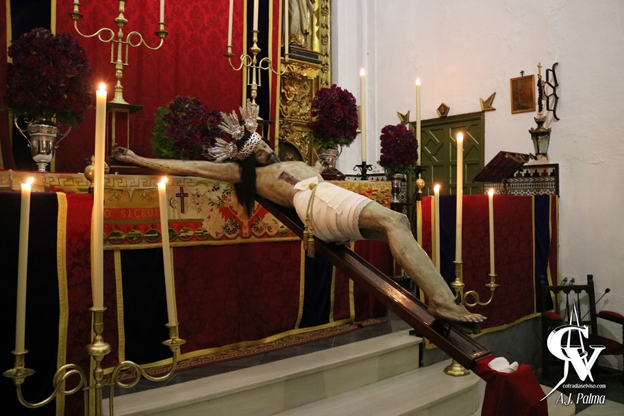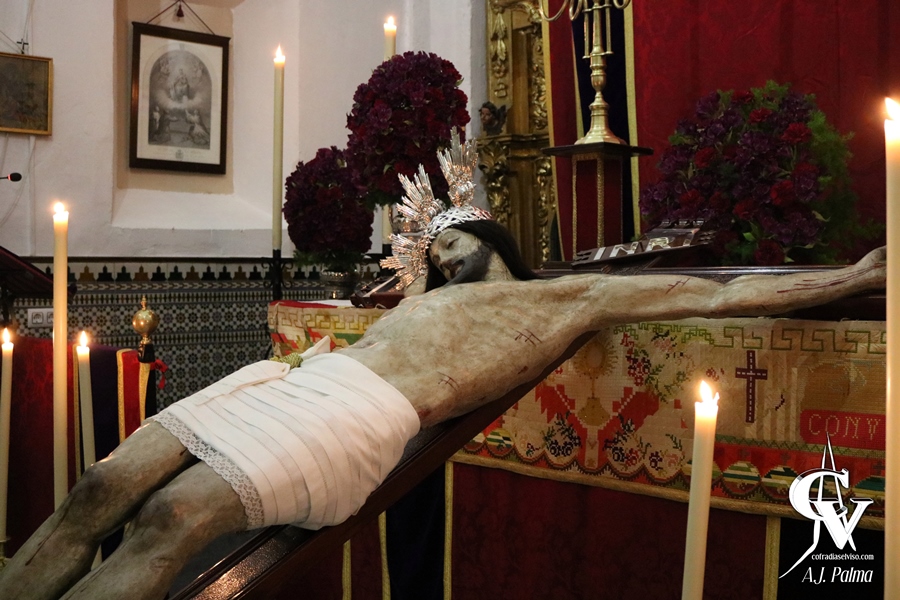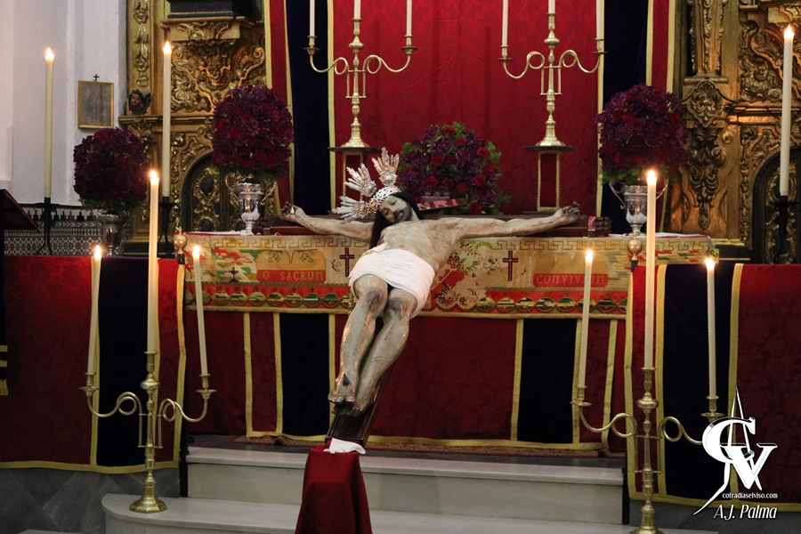 Esta devota imagen de nuestra localidad finalizaba los Cultos con su devoto besapiés, presentada de forma horizontal para que los fieles pudieran acercarse. El siempre imponente Cristo de la Misericordia pudo tener este tradicional Culto en la Iglesia Conventual del Corpus Christi, apenas unos días antes de que toda la actividad cesase.