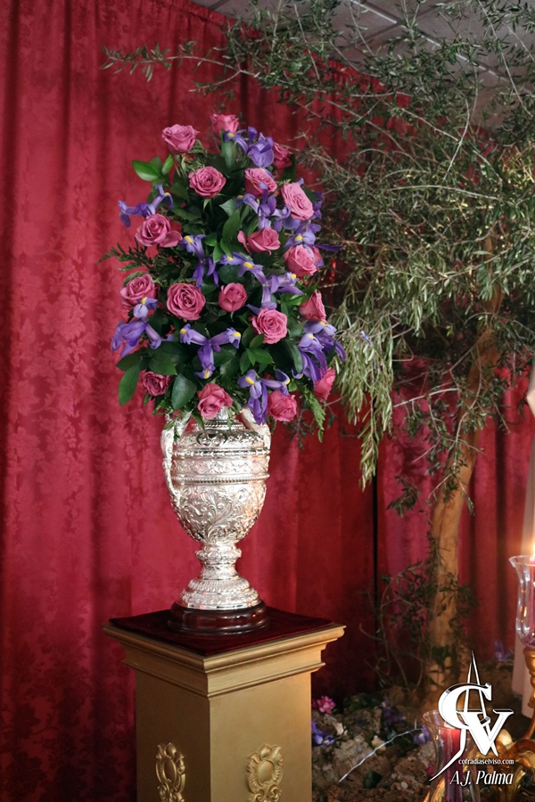 En el altar mayor de la Capilla María Santísima de la Esperanza se encontraba expuesto en veneración Nuestro Padre Jesús de la Redención, ataviado con túnica y mantolín blancos. El Señor se encontraba sobre un pequeño monte de corcho, ubicado sobre una peana con tejidos de color morado y piezas de madera tallada con dorado, teniendo el Señor a sus espaldas un olivo que simbolizaba el pasaje evangélico de la traición al Señor por parte de Judas. La priostía de la corporación del Martes Santo montó esta parte con mucho esmero, donde no faltó ningún detalle, desde las 30 monedas de Judas esparcidas en el monte, a la presencia de diversos pájaros en el olivo, un nido o incluso un lagarto en el propio monte. De esta forma, la priostía recreo una parte de Getsemaní en la sede canónica de la Hermandad.
