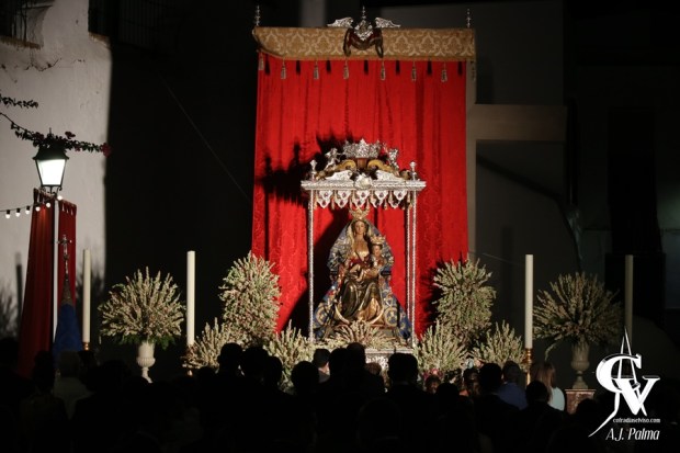 De esta forma, los fieles y devotos pudieron acompañar a la Patrona de El Viso del Alcor en los actos y cultos que se celebraron por su Festividad Litúrgica, al permitir la Plaza Sacristán Guerrero un mayor aforo que el templo parroquial, permitiendo mantener las distancias de seguridad y celebrando estos actos y cultos al aire libre, llevando a la Sagrada Imagen mediante traslados privados.