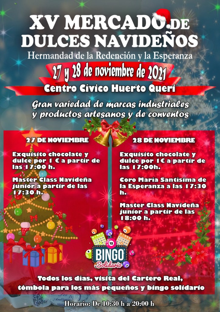 A las puertas del tiempo de Adviento la Hermandad de Redención y Esperanza organizará la decimoquinta edición de su Mercado de Dulces Navideños en el Centro Cívico “Huerto Queri”.