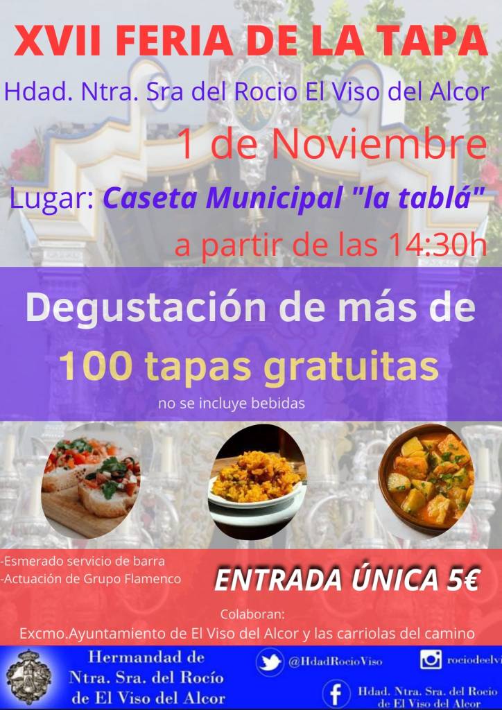 La Hermandad del Rocío celebra, un año más, su tradicional Feria de la Tapa, que en este año 2022 alcanza su decimoséptima edición. Esta Feria de la Tapa se celebrará el próximo 1 de noviembre en el Recinto Ferial de La Tablá, concretamente en el interior de la Caseta Municipal.