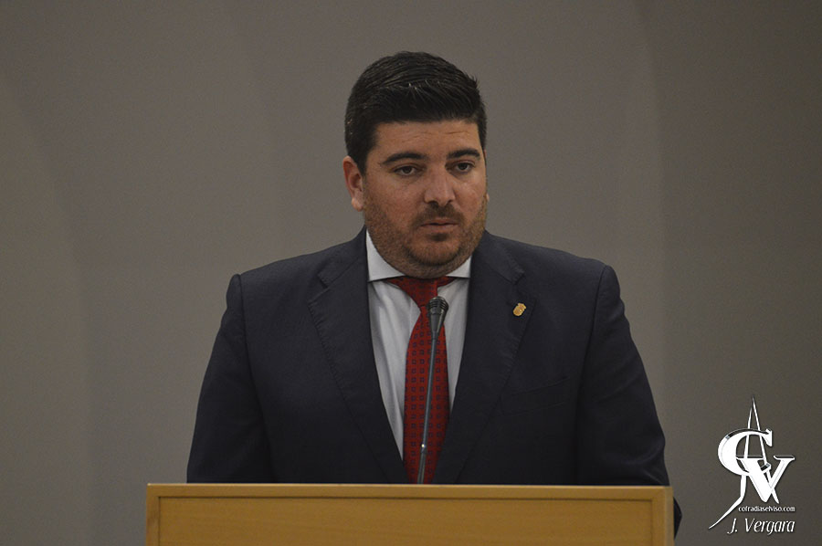 El acto lo abrió la delegada de Fiestas Mayores, D.ª Gracia Miranda, quien realizó una primera intervención para introducir el acto y presentar al artista realizador del cartel. Tras esta breve intervención, se procedió al descubrimiento de la obra por parte de su autor, el Hermano Mayor de la Hermandad de la Vera-Cruz y Rosario, el presidente del Consejo de Hermandades y del alcalde, D. Gabriel Santos, quienes intervinieron posteriormente.