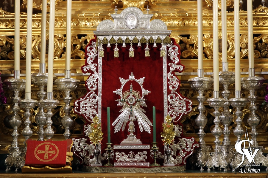 Para estos días de cultos en la corporación del Jueves Santo, la priostía de la Hermandad ha montado un altar efímero en el que el Santísimo Cristo de la Vera-Cruz preside el altar mayor de su sede canónica, la Capilla del Rosario, en solitario. Para la ocasión, se han dispuesto unas gradas con piezas del antiguo paso de salida del Señor, realzando la Sagrada Imagen en este altar.