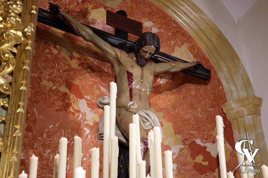 En esta veneración se podrá observar al Santísimo Cristo de la Vera-Cruz sobre las andas en las que irá en el Vía Crucis, cedidas gentilmente por la Hermandad de San Felipe de Carmona. Sobre ellas, además, figurará la imagen de Santa María Magdalena, a los pies del Señor, tras la intervención realizada recientemente por el escultor-restaurador visueño D. José Antonio León Redondo. Así, la priostía de la corporación recupera una antigua estampa, ya que el Cristo de la Vera-Cruz iba acompañado en su paso por un misterio compuesto por distintas imágenes conformando un Calvario.