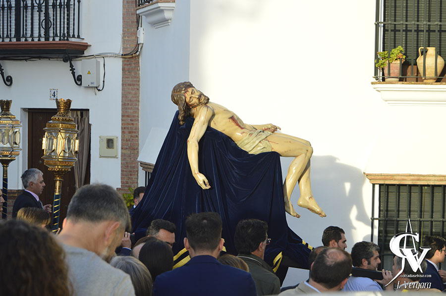 La Sagrada Imagen no solo fue acompañada por los hermanos de luz, el cortejo que le precedía, y musicalmente por un coro de voces masculinas, también muchos fieles y vecinos se acercaron a ver el discurrir de la cofradía por este céntrico entorno. Con el mantenimiento de los cambios realizados el año pasado, este acto ha ganado popularidad y se va consolidando en el calendario.