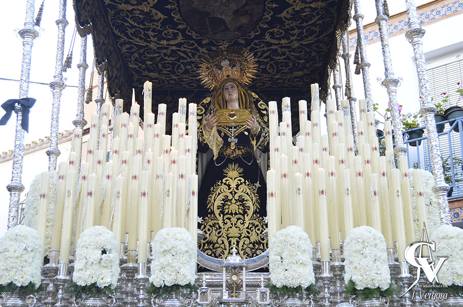 En el paso del Señor destacó el exorno floral, con un friso variado compuesto de flores silvestres. La imagen atribuida a D. Juan Bautista Vázquez «El Viejo» lució el antiguo INRI de plata, además de las potencias de plata sobredoradas, en un paso iluminado por hachones de color tinieblas. Respecto al paso de la Virgen, el exorno floral estuvo compuesto por claveles blancos, con algo de verde en la base de los ramos y en la base del friso. En el atavío de la Virgen de los Dolores destacó el uso de un tocado de tablas dorado, un pañuelo realizado por el Centenario Fundacional de la Hermandad de los Dolores y el uso de distintas joyas sobre la saya, tocado o corona de salida.