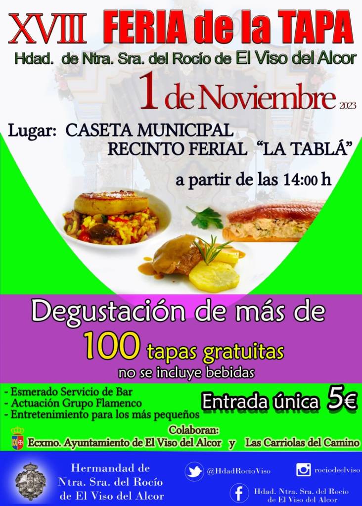 Un año más, la Hermandad del Rocío organiza la Feria de la Tapa, que alcanza en este año 2023 su XVIII edición. Un evento que está asentado en el calendario gracias a las características del mismo, con gran variedad de tapas.
