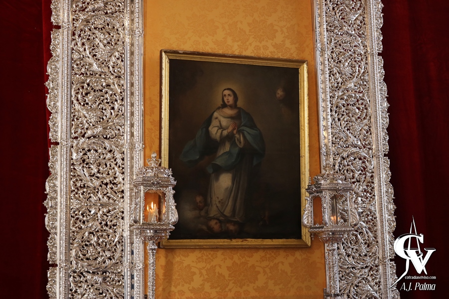 A la altura del devoto, la priostía preparó un dosel compuesto por los respiraderos del paso de palio de la Santísima Virgen y una tela de damasco dorado, en el que se encontraba un cuadro de la Inmaculada Concepción flanqueado por dos faroles de la cofradía. Este dosel, ubicado en una escalinata, tenía en sus extremos unas credencias con platería, espejos ornamentados sobre manifestadores, ramos de flores y puntos de luz.