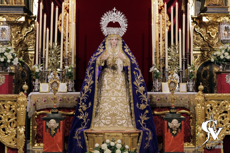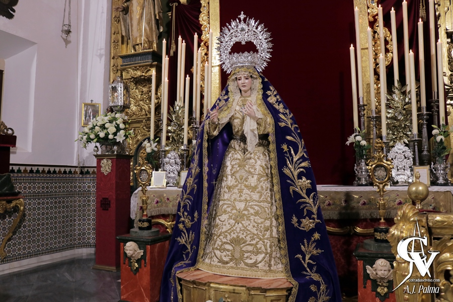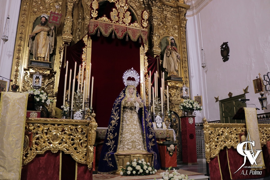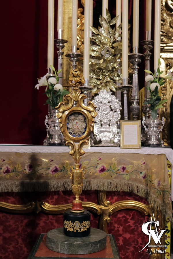 Para esta veneración, la priostía de la corporación mercedaria aprovechó el altar efímero montado para el Solemne Triduo, acercando a la Sagrada Imagen a los fieles y devotos respecto a los días previos al bajarla de la peana construida con el frontal de la antigua canastilla del paso del Señor. Flanqueando a la Santísima Virgen se colocaron dos pedestales marmoleados, sobre los que se colocaron distintos relicarios que posee la Hermandad.