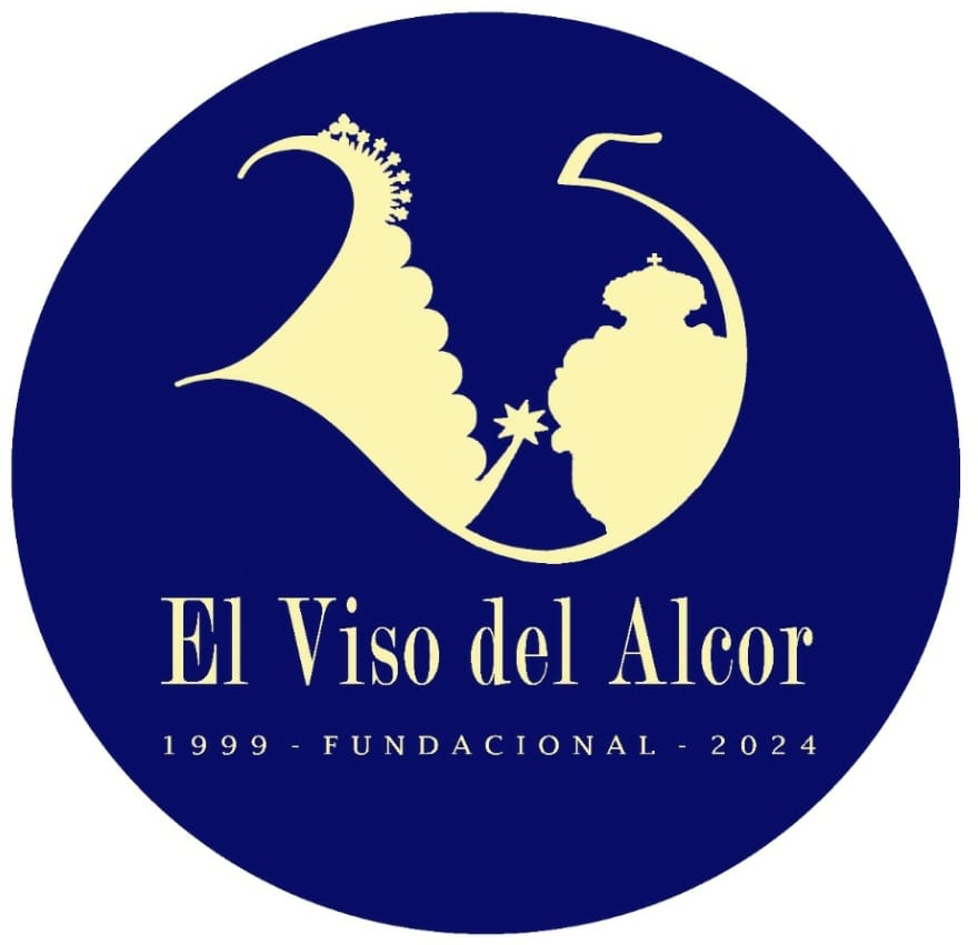 El logotipo tiene una forma circular, utilizando por colores los del techo de la carreta de esta corporación rociera, un techo que ya se ha convertido en una marca y signo de identidad de esta Hermandad, con ese característico color azul lleno de estrellas. En el centro, un 25 adquiere el protagonismo del logotipo, emergiendo del 2 la silueta de la Virgen del Rocío y del 5 la silueta de la medalla de la Hermandad. Bajo este 25 se encuentran las leyendas «El Viso del Alcor» y «1999 – FUNDACIONAL – 2024», haciendo alusión al 25 Aniversario Fundacional de la Hermandad del Rocío de El Viso del Alcor.
