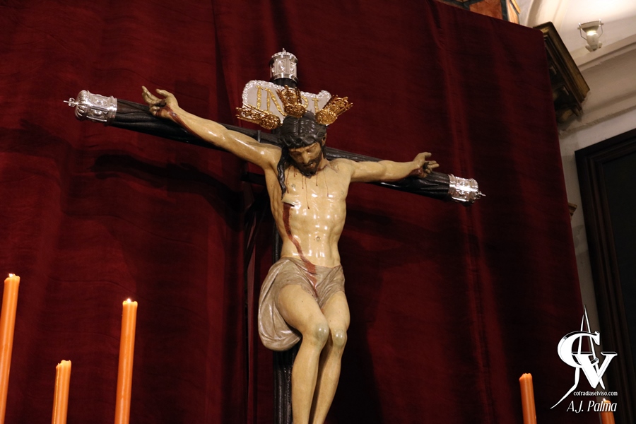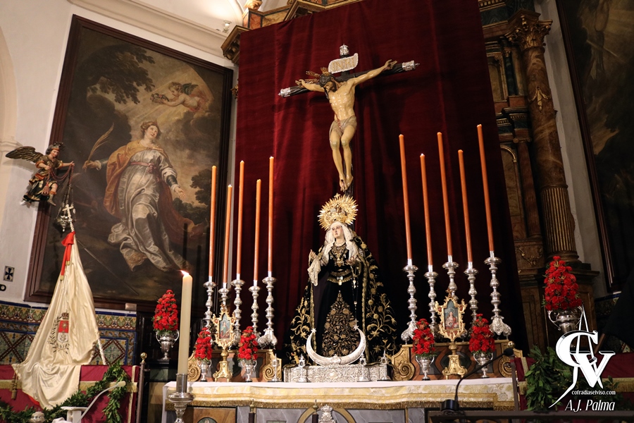 La Sagrada Imagen presidía la Iglesia Parroquial de Santa María del Alcor en un altar sencillo, con 10 puntos de luz con cera de color tinieblas y candelabros procedentes del paso de palio de esta cofradía, estando el conjunto delante de un gran dosel de terciopelo de color rojo sangre. Estos puntos de luz se situaron sobre unas nuevas gradas que estrenaba la Hermandad, realizadas con trabajos de los hermanos D. Antonio Carrión Jiménez y D. José Antonio León Redondo, con ornamentación de motivos vegetales y con policromía marmoleada. De esta forma, estas gradas encajan con el diseño del frontal del altar y de los pedestales que flanquean el mismo.