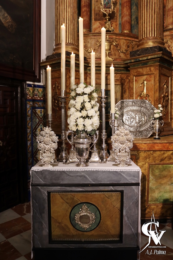 Para este día, la priostía de la Hermandad montó un altar efímero basado en el altar montado para el Septenario, acercando a la Sagrada Imagen a los fieles y devotos que durante toda la jornada del Viernes de Dolores se pasaron por la Iglesia Parroquial de Santa María del Alcor, en un día considerado como festivo en el seno de esta corporación.