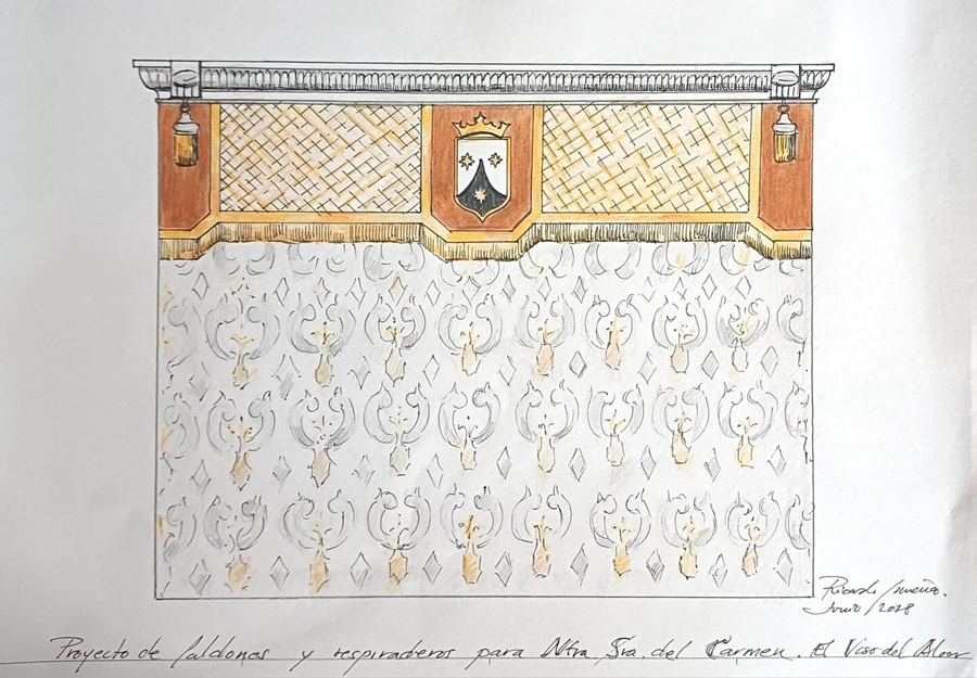 De esta forma, el próximo 16 de julio veremos este estreno, consistente en unos nuevos respiraderos de malla dorada y terciopelo marrón, color característico de la advocación del Carmen. El diseño fue realizado en el año 2018 por el visueño D. Ricardo Jiménez Ruiz, viendo la luz este año este estreno. Además, el próximo año se verá completado el proyecto, con el bordado en oro de las corbatas, trabajo que realizará el también visueño D. Miguel Ángel Crespo Martín.