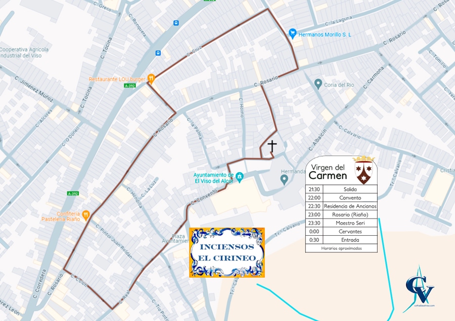 En este año 2024 la procesión tiene diversas novedades, siendo una de ellas el recorrido. Tras aprobarlo la Junta de Gobierno en las últimas semanas, la procesión discurrirá por las siguientes calles: Manuel Roldán «El Campanero», Santa María del Alcor, Plaza Sacristán Guerrero, Convento, Plaza Claudio León, Plaza del Ayuntamiento, Real, Colón, Rosario, Maestro Seri, Cruz, Cervantes, Rosario, Santa María del Alcor, Plaza Padre Nicasio y Manuel Roldán «El Campanero». Esto dejará imágenes inéditas, como el saludo de la Santísima Virgen en la Casa de Hermandad de Santa María del Alcor o su transitar por Calle Cruz, una calle que siempre recibió de manera muy especial a la Virgen del Carmen en un antiguo recorrido en el que la Virgen hacía un saludo a los vecinos de esta popular calle.
