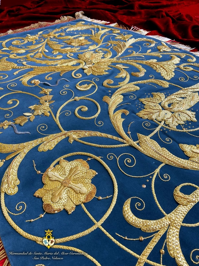 Este martes 10 de septiembre, coincidiendo con el XIX Aniversario de la Coronación Canónica de Santa María del Alcor, Patrona de El Viso del Alcor y titular de la Hermandad de Santa María del Alcor, ha sido presentado y bendecido su nuevo manto bordado.