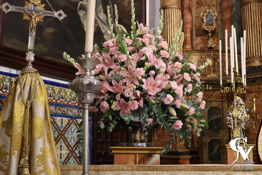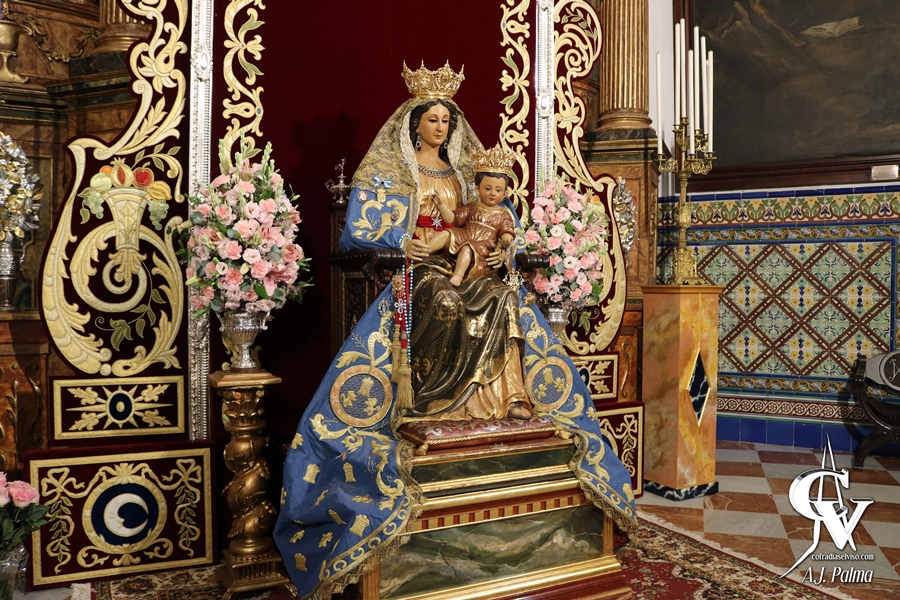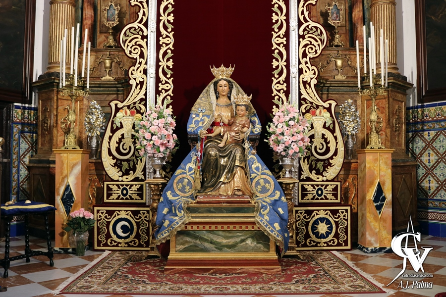 Con este montaje, la Hermandad de Santa María del Alcor daba comienzo a los Solemnes Cultos en honor de la Patrona de El Viso del Alcor en su sede canónica, la Iglesia Parroquial de Santa María del Alcor, cuyas columnas fueron engalanadas con colgaduras azules. Este montaje se mantuvo también para el siguiente día, en el que se realizó la tradicional Presentación de los Niños nacidos en el último año.