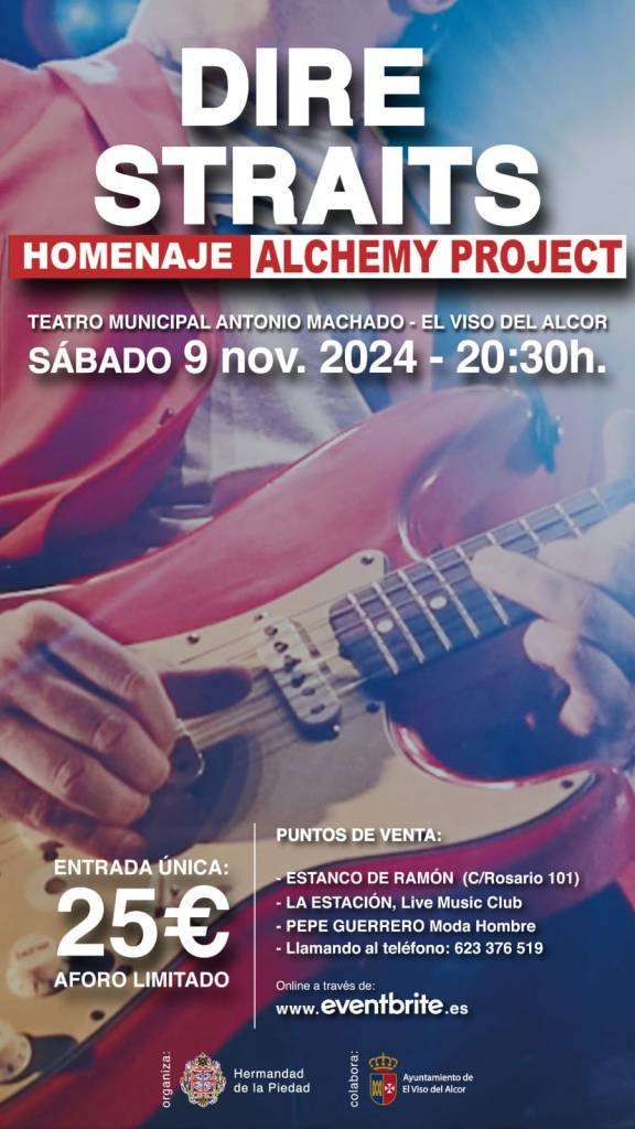 La Hermandad de la Piedad se encuentra vendiendo entradas para un concierto que ofrecerá la banda Alchemy Project como homenaje a Dire Straits, siendo organizado este concierto por la corporación de la Madrugá visueña, contando con la colaboración del Ayuntamiento de El Viso del Alcor.