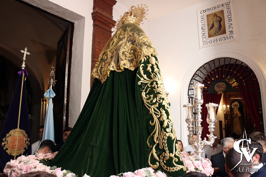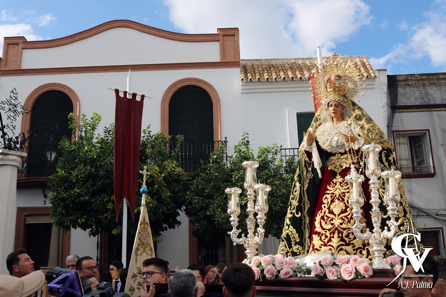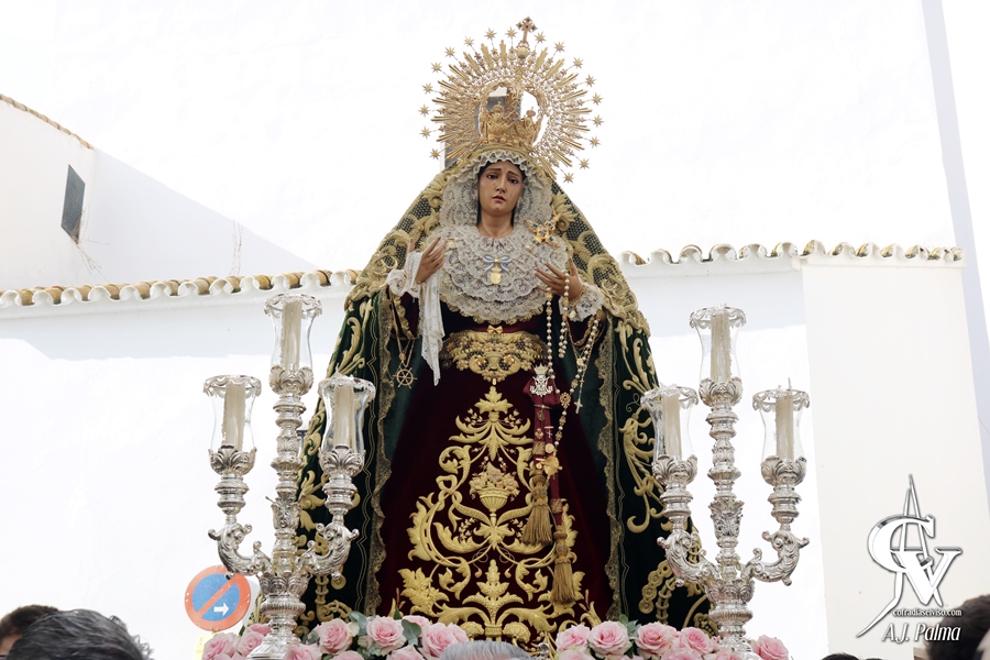 El acompañamiento musical corrió a cargo de la Banda de Música Santa María del Alcor, que interpretó un repertorio compuesto de marchas alegres y clásicas. Respecto a las andas, la Virgen de la Esperanza iba ataviada de igual forma que en la jornada del 12 de octubre, teniendo las andas exornadas con un friso de rosas de color rosa.