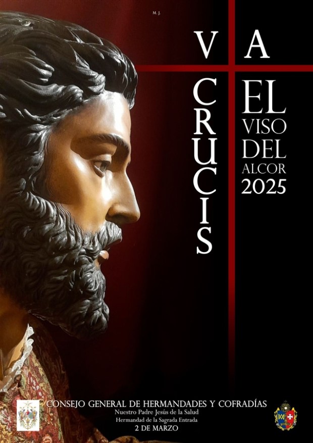 El cartel es una composición fotográfica, en la que se puede ver un primer plano del perfil del Señor de la Salud en la mitad izquierda de la obra, sobre un fondo de color rojo que va degradándose a color negro. En la mitad derecha del cartel se puede ver una composición con una cruz de color rojo sangre, con la leyenda «VÍA CRUCIS EL VISO DEL ALCOR 2025». En la parte inferior del cartel se pueden ver los escudos de los entes organizadores de este acto penitencial, indicando además la fecha en la que se celebrará dicho Vía Crucis, el 2 de marzo de 2025. Ese día, primer domingo de marzo, es el domingo anterior al Miércoles de Ceniza, coincidiendo con los cultos anuales de la Hermandad.