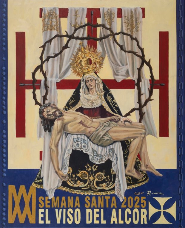 En la tarde del pasado viernes 7 de marzo, el patio del Ayuntamiento de El Viso del Alcor acogía la presentación del cartel anunciador de la Semana Santa 2025. En este año, la obra ha sido realizada por el artista D. César Rámirez Martínez, siendo dedicada a la Hermandad de la Piedad.