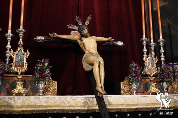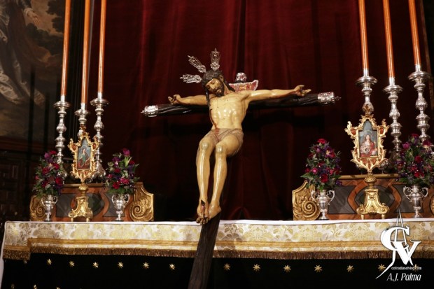La priostía de la corporación de la tarde-noche del Viernes Santo bajó la Sagrada Imagen de su altar de cultos en la Iglesia Parroquial de Santa María del Alcor, colocando al Cristo del Amor en posición diagonal para facilitar la veneración a los fieles. El altar efímero se mantuvo casi en su totalidad, reduciendo los puntos de luz, algo que facilitaría el traslado del Señor hacia sus andas para el Vía Crucis.