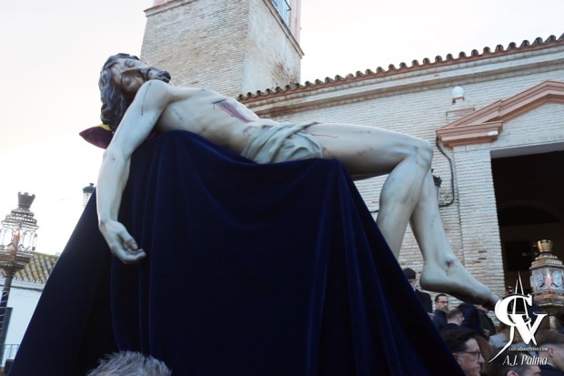 Bajo la bella luz de la tarde, la Sagrada Imagen fue portada por los costaleros de la cofradía, partiendo desde la Iglesia Parroquial de Santa María del Alcor para rezar el ejercicio del Vía Crucis por las calles aledañas al templo. Concretamente, el cortejo recorrió las calles Manuel Roldán «El Campanero», Amargura, Albaicín, Conde de Castellar, Plaza Sacristán Guerrero, Santa María del Alcor y Manuel Roldán «El Campanero», entrando de nuevo en la sede canónica de la Hermandad aproximadamente a las 19:25 horas.