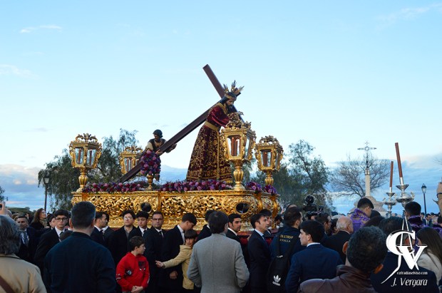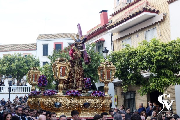 Por parte de la priostía de la Hermandad, todo se preparó al detalle. De esta forma, las andas sobre las que iba el Señor tenían la canastilla y los faroles del antiguo paso de Nuestro Padre Jesús Nazareno, que realizase el Maestro Lopa. La Sagrada Imagen portaba túnica burdeos bordada, la corona de espinas del CCCL Aniversario, el nuevo juego de potencias que se encontraba estrenando, Cruz plana y la Llave de Oro de la Villa en su mano derecha. Además, acompañaba al Señor la imagen de Simón de Cirene, como llevaba acompañando a esta Sagrada Imagen desde hace más de 350 años. Las andas, que contaban con cera de color tinieblas y un bello exorno floral con flores en tonos violetas y malvas repartidas entre el friso y dos jarras, fueron portadas a hombros por las distintas cuadrillas de costaleros de la cofradía, tanto del paso del Señor como del paso de palio de María Santísima del Mayor Dolor y Traspaso.