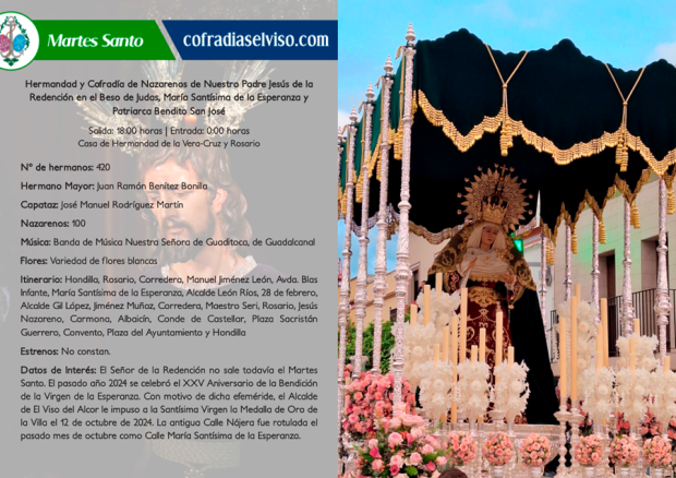 ACTUALIZACIÓN: La Hermandad de la Redención y Esperanza, debido a los pronósticos meteorológicos, ha suspendido la estación de penitencia. Este anuncio se hizo a las 19:05 horas, tras una prórroga de una hora.