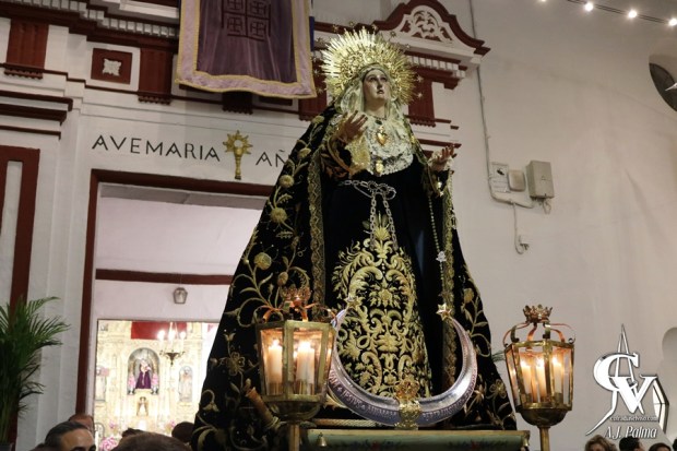 Una vez finalizada la Eucaristía, sobre las 21:45 horas aproximadamente, la Santísima Virgen salía del templo mercedario en dirección hacia la Barriada del Carmen, donde llegaría a la Capilla María Santísima de la Esperanza para pasar la noche allí. En esta noche la efusividad al recibir a la Virgen de los Dolores por parte de los vecinos de las distintas calles aumentaría de intensidad.