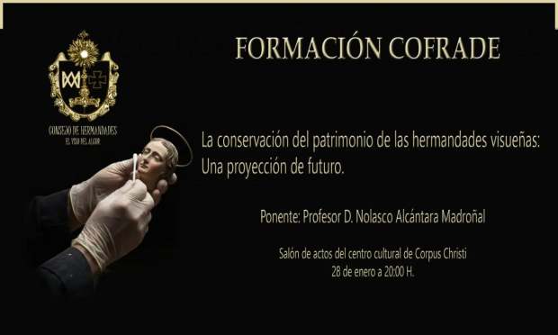 El Consejo General de Hermandades y Cofradías de nuestra localidad organiza una sesión de formación que bajo el título de “La conservación del patrimonio de las hermandades visueñas: una proyección de futuro” tendrá lugar este miércoles 28 de Enero de 2026 a las 20:00 horas de la tarde en el Centro Cultural “Convento del Corpus Christi”.