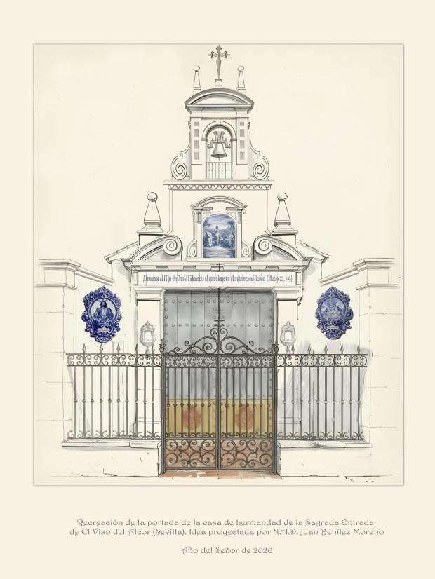 Concretamente, el boceto difundido es una recreación de la portada de la futura obra de la Hermandad. Esta idea ha sido proyectada por D. Juan Benítez Moreno, Director Artístico de la corporación, con una gran cantidad de detalles.