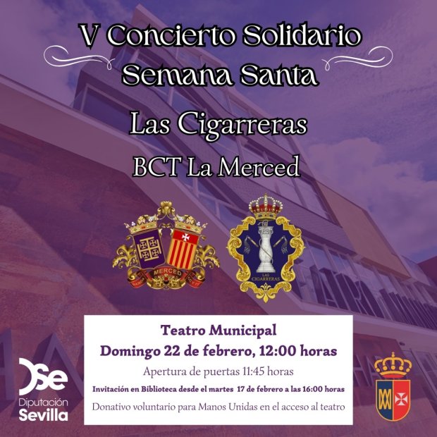 Para poder acudir a este concierto en el que se proyectarán también imágenes de la Semana Santa de El Viso del Alcor y de Sevilla será necesario haber retirado la invitación en la Biblioteca Municipal de manera gratuita. Además, se podrá colaborar con un donativo que irá destinado a Manos Unidas.