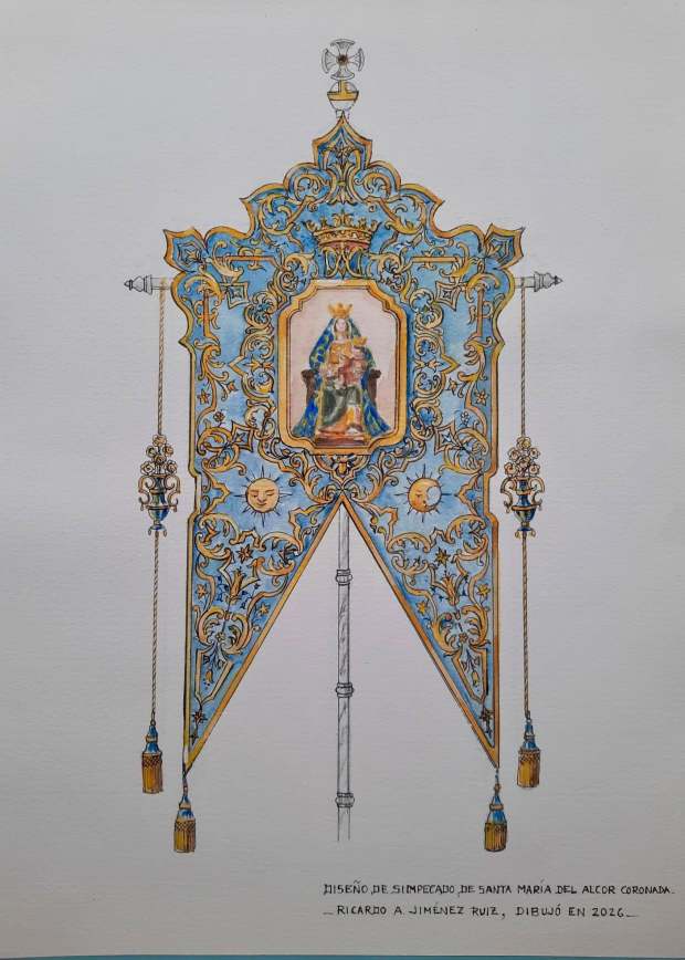 La Hermandad de Santa María del Alcor presentó en los últimos días el diseño del nuevo Simpecado de Santa María del Alcor Coronada. Un proyecto que se llevará a cabo tras haber sido aprobado por los hermanos de la corporación en Cabildo General Extraordinario.