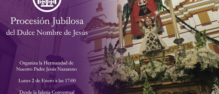 Por tercer año consecutivo, la Hermandad de Nuestro Padre Jesús Nazareno organiza para el próximo lunes 2 de enero la procesión jubilosa del Dulce Nombre de Jesús, para la que se editó un cartel realizado por D. Jesús Vergara Falcón basado en una fotografía tomada a principios del pasado año por nuestro director D. Antonio Javier Palma … Sigue leyendo Así será la Procesión del Dulce Nombre de Jesús