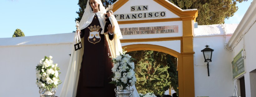El pasado domingo 4 de noviembre tuvo lugar el Traslado en Santo Rosario de la Bendita Imagen de Nuestra Señora del Carmen hacia el Cementerio Municipal de San Francisco. Por quinto año consecutivo la devotísima imagen ataviada con el ajuar propio del mes de noviembre y portada sobre unas sencillas andas exornadas con crisantemos blancos … Sigue leyendo El mal tiempo no impidió el Rosario de la Virgen del Carmen al Cementerio