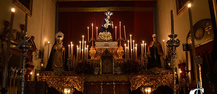 Un altar sobrio y elegante para los cultos de Nuestro Padre Jesús Nazareno
