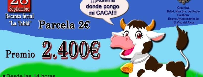 La Hermandad del Rocío celebrará el próximo sábado 28 de septiembre el evento La Caca de la Vaca 2019, en el Recinto Ferial de La Tablá. Comenzando a las 14:00 horas, este concurso consiste en comprar parcelas al precio de 2€ intentando adivinar donde hará caca la vaca, pudiendo llevarse 2400€ el ganador del concurso. … Sigue leyendo La Caca de la Vaca 2019
