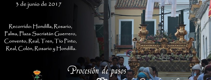 El próximo sábado 3 de junio tendrá lugar en nuestro pueblo la procesión de pasos de la Cruz de Mayo, organizada por la Hermandad de Vera-Cruz y Rosario. Como ya anunció este portal, dicha procesión estaba prevista para el pasado 27 de mayo, pero al coincidir diversos actos desde la corporación se vio oportuno este … Sigue leyendo Procesión de pasos de la Cruz de Mayo 2017